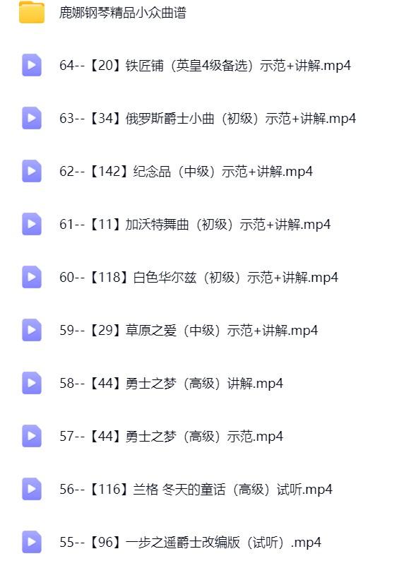 鹿娜老师《百首小众好听曲谱》示范讲解+电子版琴谱(适合比赛表演考级) 云目录: