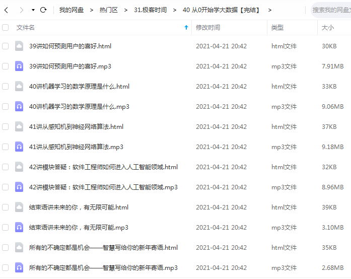 极客时间 从0开始学大数据【完结】 百度云资源目录: